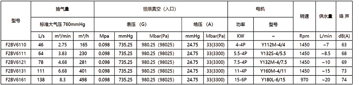 2.上列性能基于進氣溫度20℃,進水溫度15℃,排氣壓力1013hpa的條件,被吸入氣體為飽和空氣。(飽和空氣是指在對應吸入狀態(tài)下,其相對濕度為100%的濕空氣。)