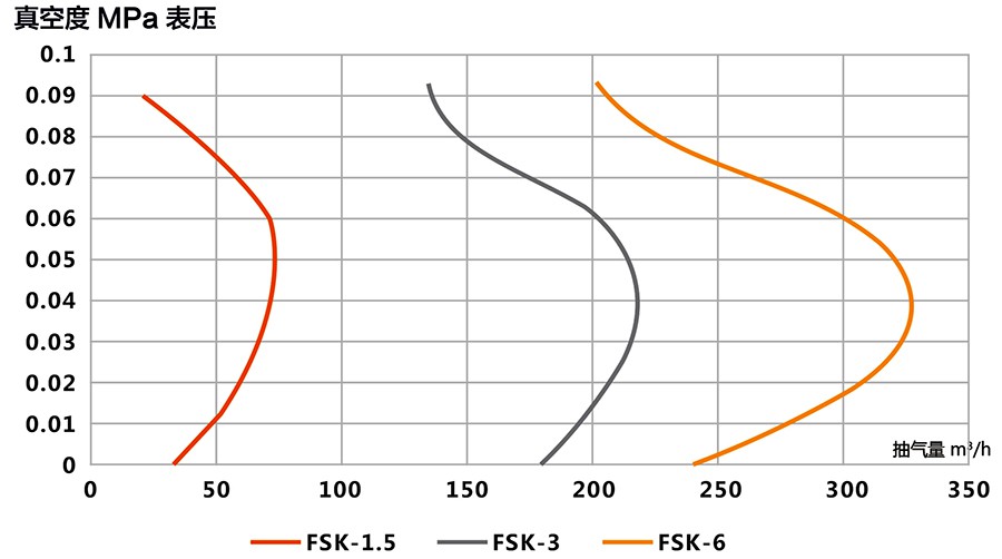 適應(yīng)于90~360m3/h的低抽氣量區(qū)間,極限真空度較低,可增加電機(jī)功率作為壓縮機(jī)使用。